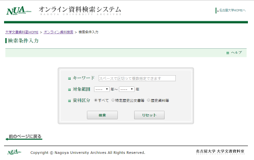 検索条件入力画面に検索条件を入力し、「検索」ボタンをクリックします。