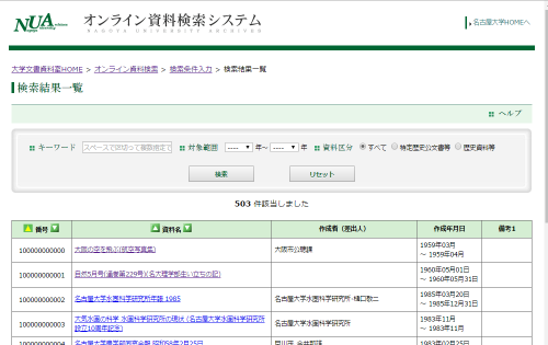 検索条件に該当する資料が一覧表示されます。